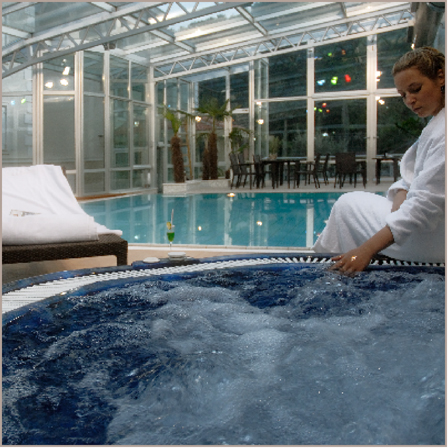 U našoj prostranoj wellness oazi teško ćete poželjeti dodatne sadržaje pored: staklenog vrta s bazenom i barom, whirlpoola, parne kupelji, finske i infracrvene saune te fitnessa. Uživajte u opuštajućim masažama i tretmanima ljepote na bazi aroma i thalasso spa terapije.